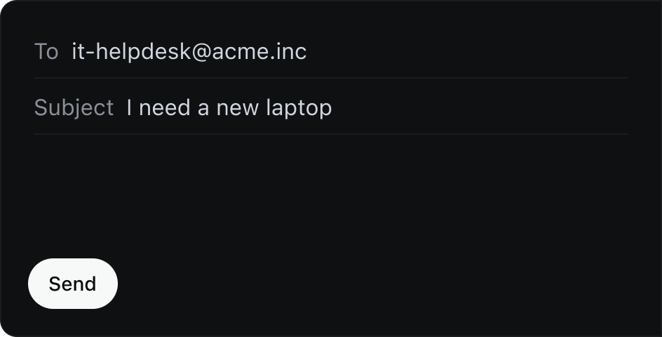 Create new requests by cc'ing or forwarding to designated email addresses.