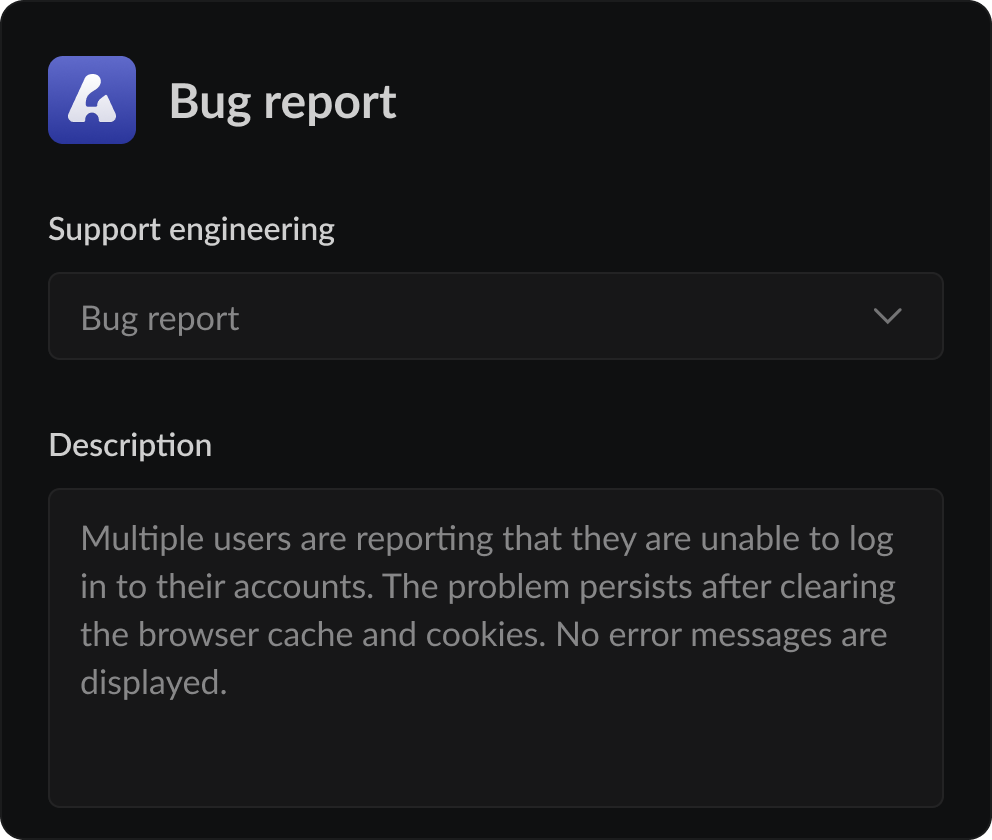 Enable people outside of your engineering org to quickly file bug reports without worrying about complex issue details.