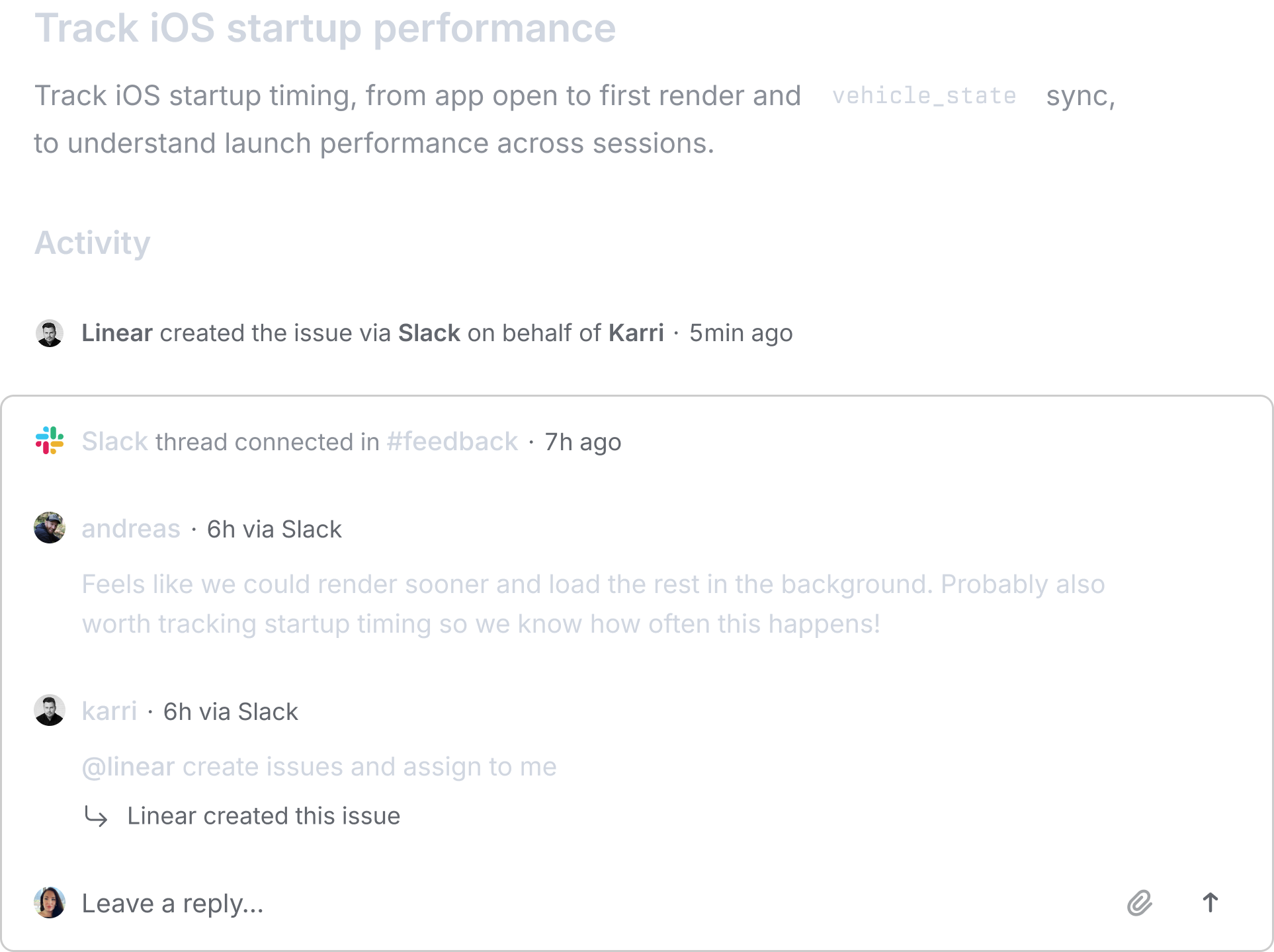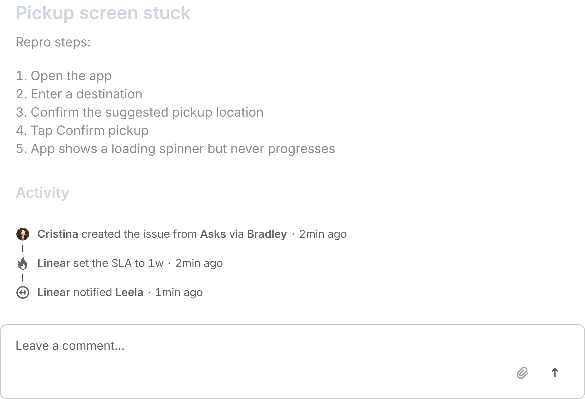 Turn Slack conversations, customer support interactions, and sales calls into actionable issues that get routed to the right team.