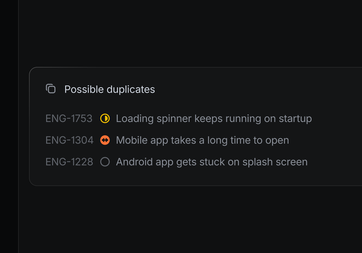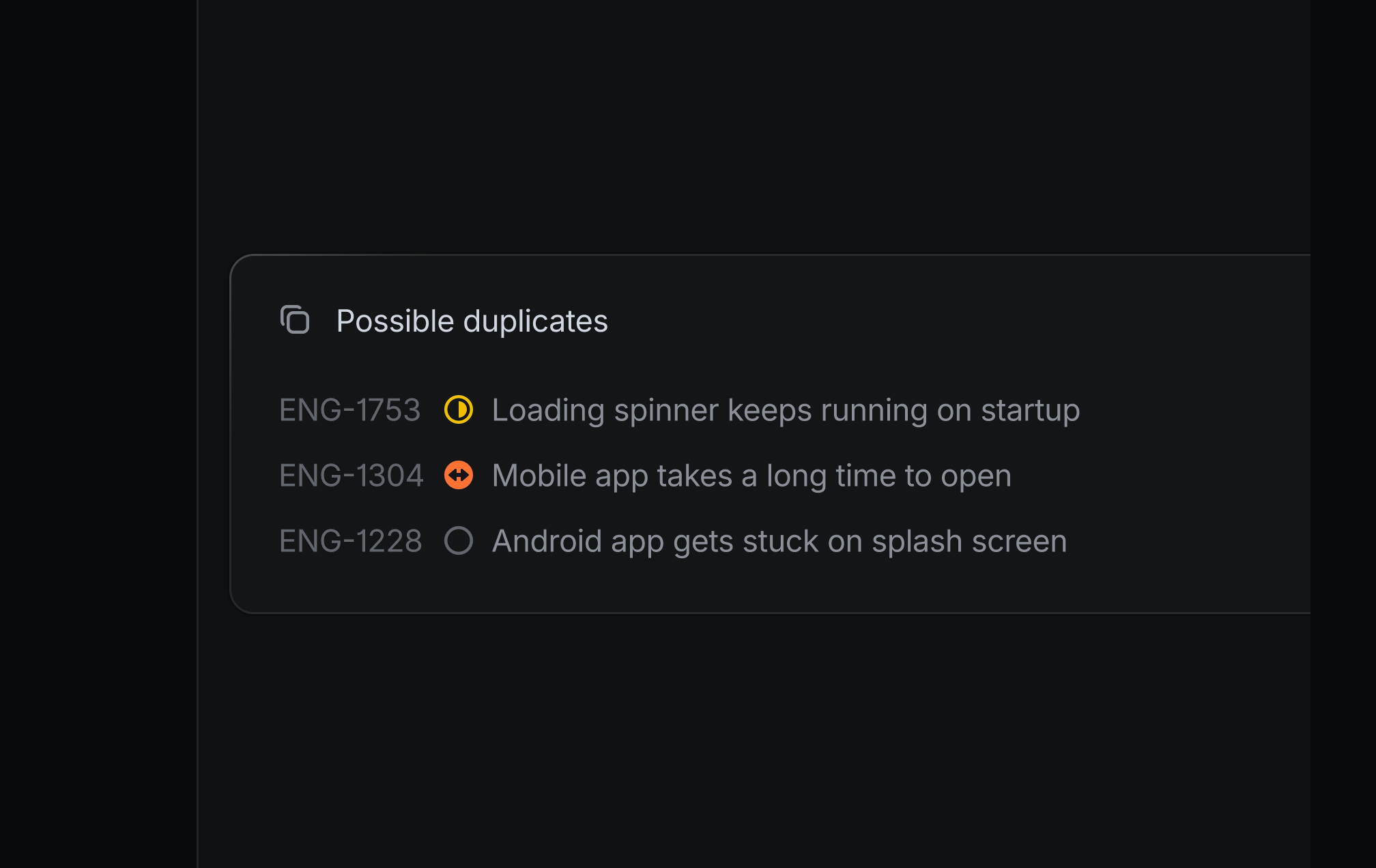 Triage Intelligence identifies similar issues and links related work, so you don't end up with three versions of the same thing.