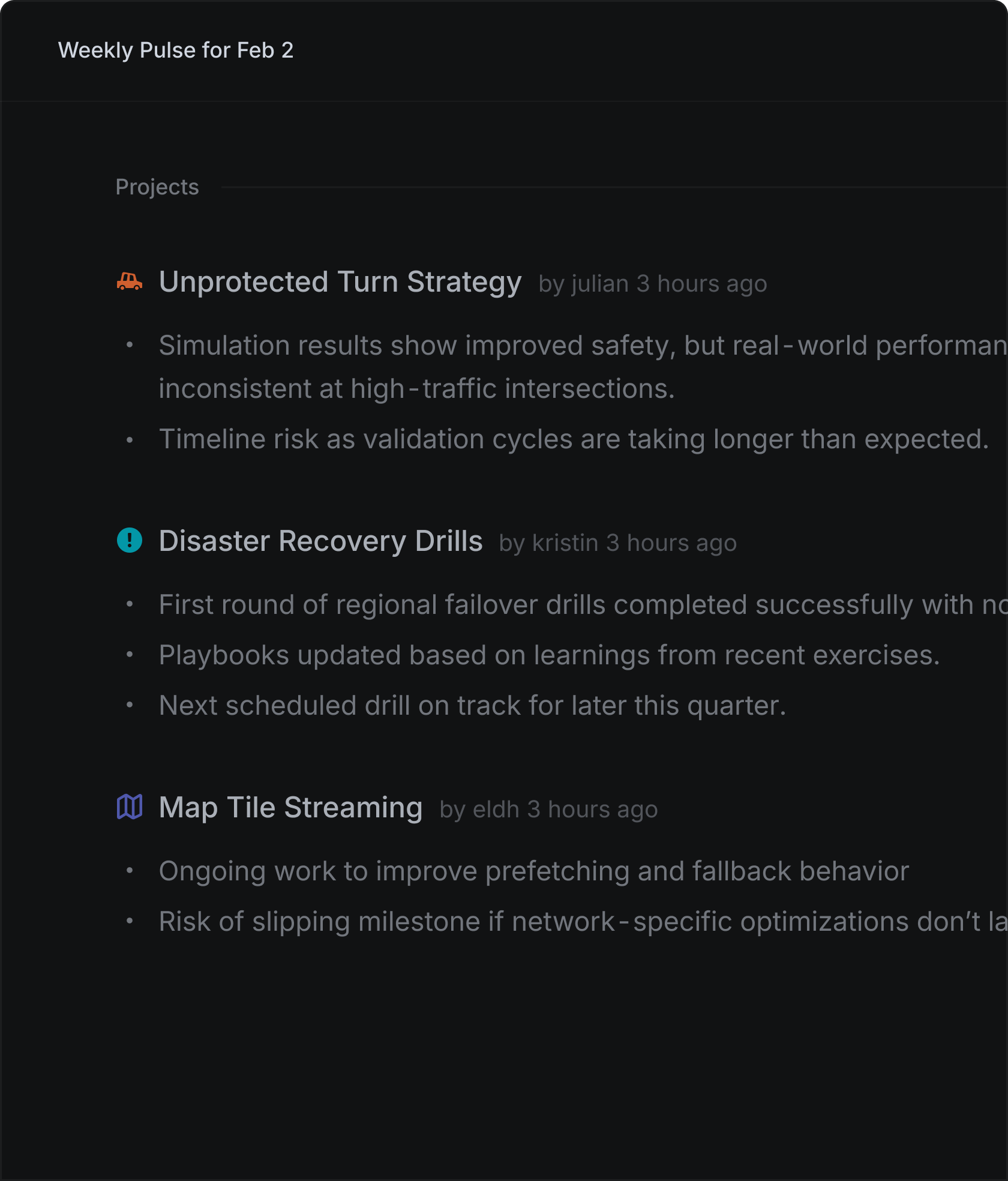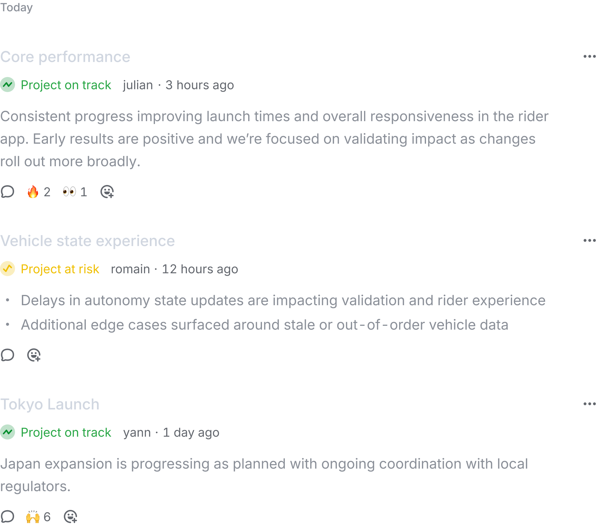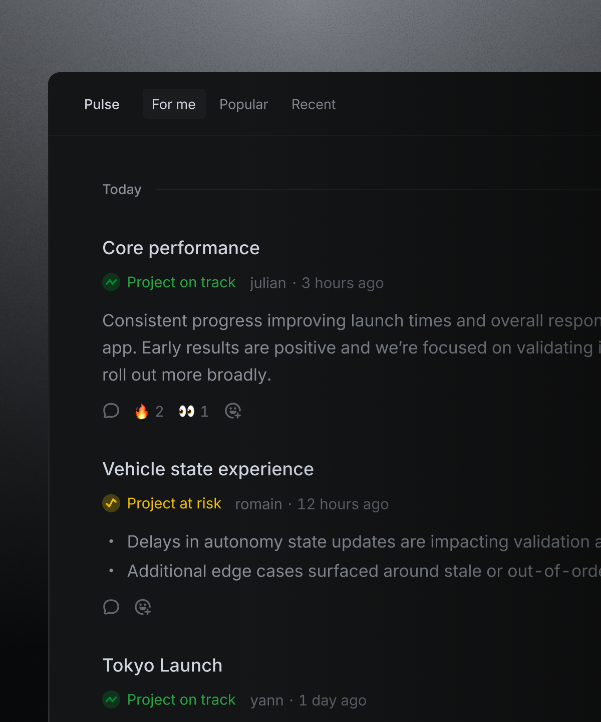 Stay up to date on what's happening across your product organization with a personalized feed of updates and discussions.